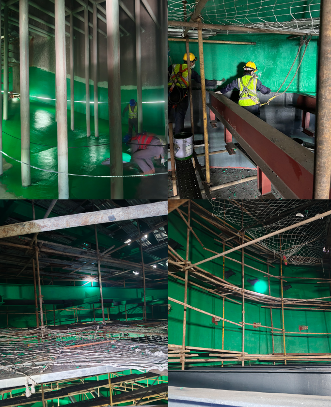 该项目于2025年9月19日正式启动,面临着极为严苛的施工条件:仅7天的超短工期内,需完成吸收塔及净烟道的防腐核心任务,任务强度之大、时间之紧迫不言而喻。更具挑战的是,施工期间天气突然骤变,给户外防腐作业带来了诸多不确定因素,进一步压缩了有效施工时间。面对双重压力,武汉东臻科技有限公司并未退缩,而是迅速响应、科学部署,组织专业施工团队全身心投入到各个施工环节。通过优化施工方案、合理调配人力物力、灵活调整作业时间,公司克服了恶劣天气带来的不利影响,严格遵循防腐工程的技术规范与质量标准,在规定时限内高质量完成了全部核心施工任务,确保了一号机组脱硫系统的安全稳定运行基础。