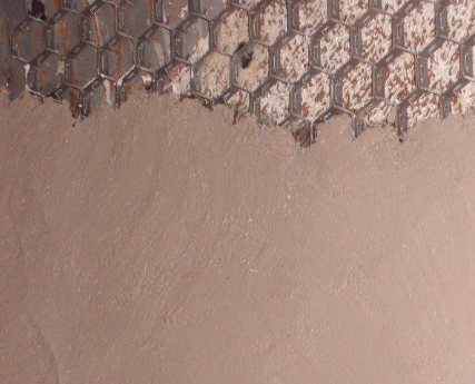强劲的核心性能,为脱硝烟道提供可靠的防护支撑,抵御高速烟气冲蚀与介质侵蚀。该龟甲网耐磨胶泥以棕刚玉、碳化硅等耐磨骨料为主材,复配超细粉及复合结合剂,通过颗粒紧密堆积形成致密的防护结构,其常温抗压强度≥100MPa,体积密度大,无宏观缺陷,硬度高、耐磨性强,解决了传统防护材料耐磨性能不足、耐腐蚀效果差的弊端,为脱硝烟道提供长效防护。